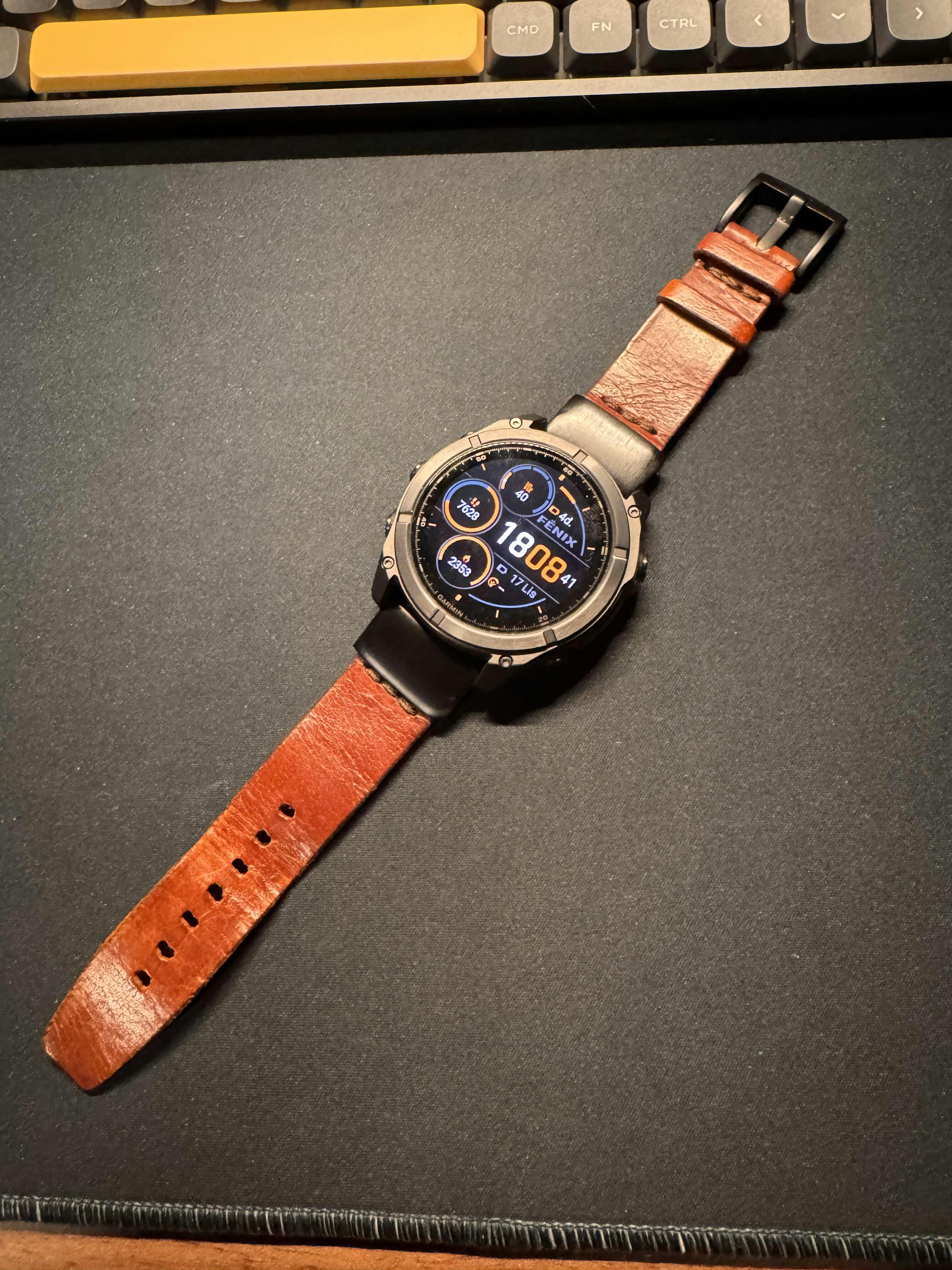 Handmade Leather Strap for Garmin Watch - Fenix / Epix / Quatics / Tactics / Enduro - 51mm, crafted in Gdańsk (Poland) with care.